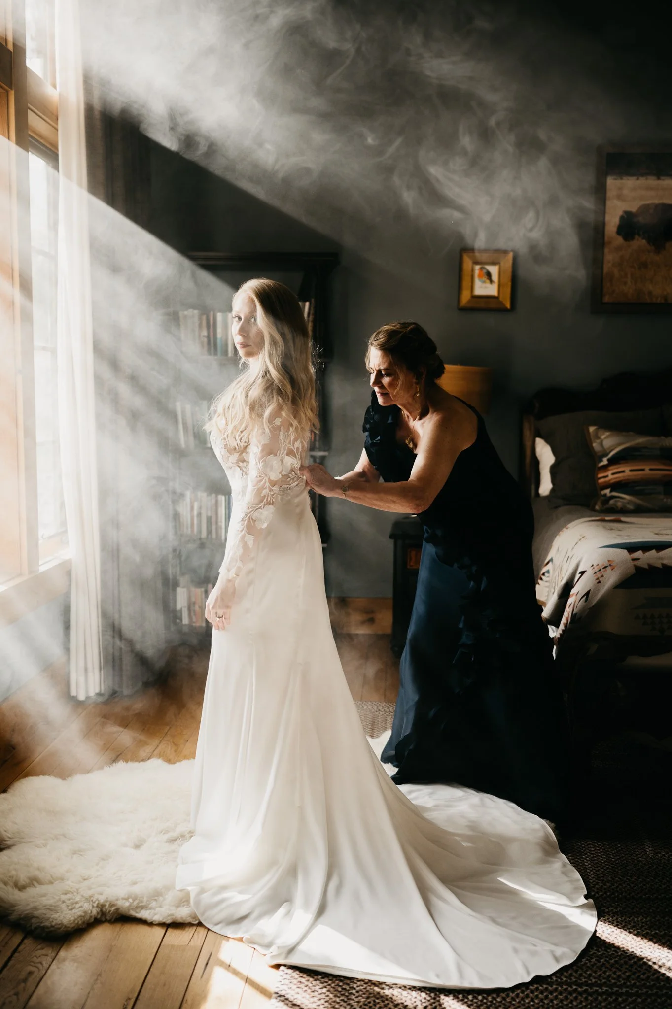 Cramming 8 bridesmaids, hair & makeup artists, a photographer, a videographer, and family members into a single room filled with ALL your stuff can feel chaotic, as well as make your photos feel cluttered. If you're getting ready in a hotel room - consider getting an extra room or using a family member or friend's room as a designated clean space. That way, we have a clean room for photos and a quiet space for you to hang out in if you need a moment to yourself.